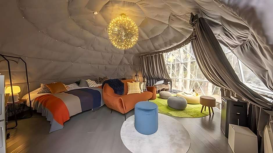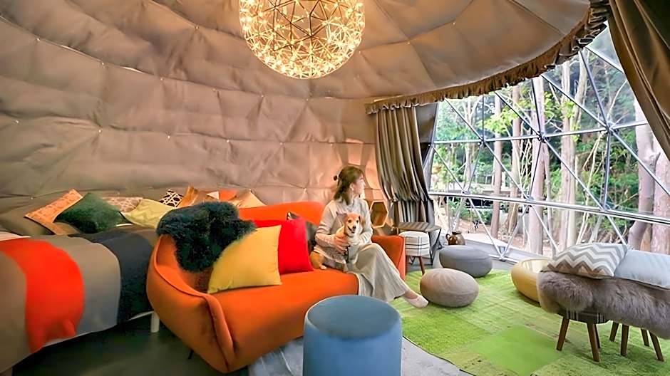 Guests will have a special experience as this tent provides a private open-air bath and a sauna. The tent offers air conditioning, a tea and coffee maker, a terrace with garden views as well as a shared bathroom boasting a bath. The unit has 4 beds.