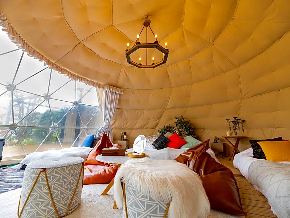 Guests will have a special experience as this tent provides a private open-air bath and a sauna. The tent offers air conditioning, a tea and coffee maker, a terrace with garden views as well as a shared bathroom boasting a bath. The unit has 4 beds.